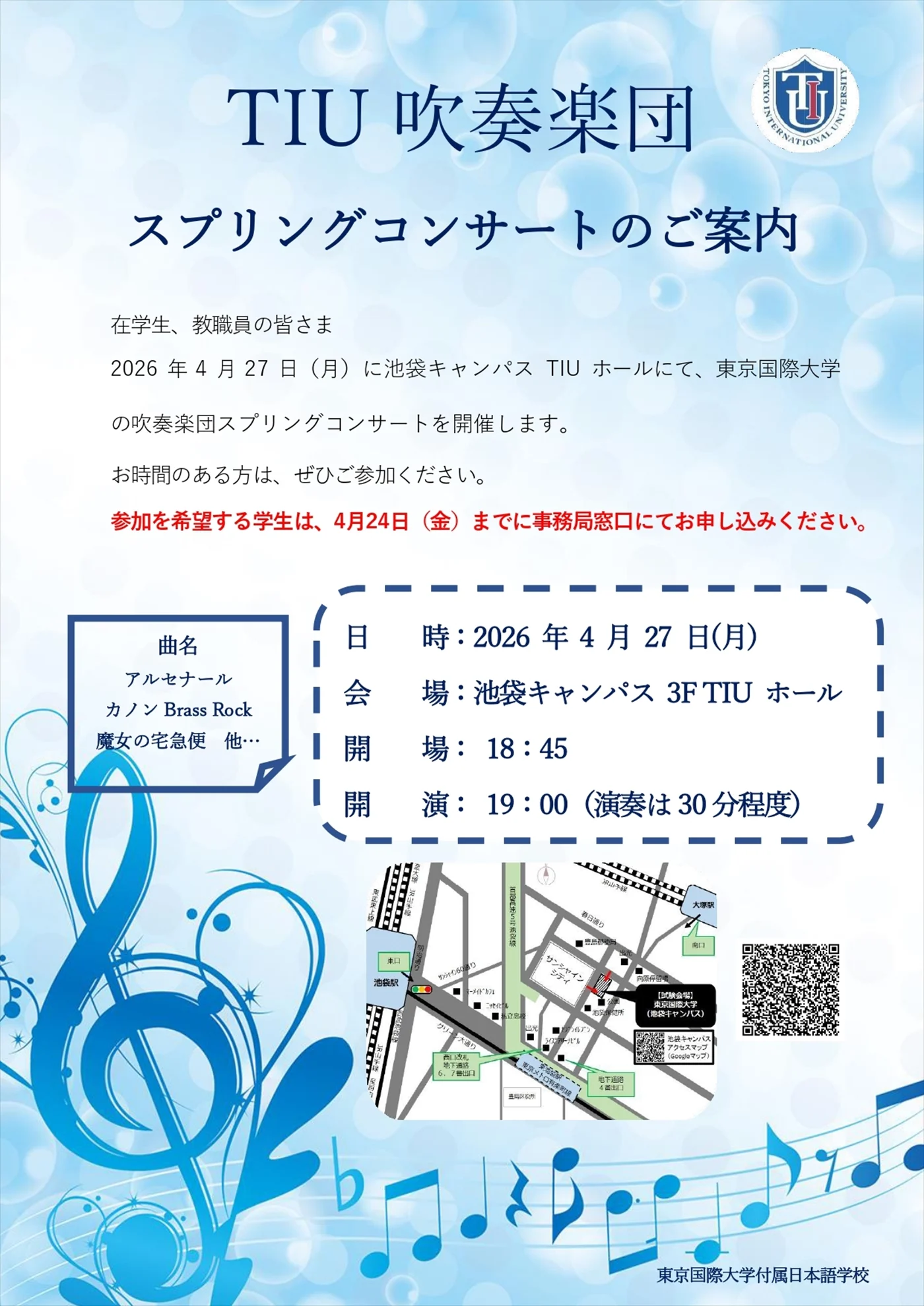 東京国際大学吹奏楽団スプリングコンサートのご案内